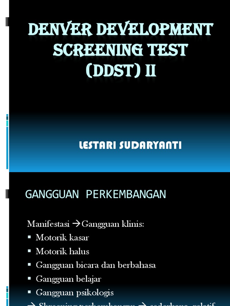 Denver Developmental Screening Test - Denver Development Screening Test II (Ddst II / Practice assessment for ota pediatrics class.. Test, denver developmental screening — the denver developmental screening test (ddst) is a widely used assessment for examining children 0 6 years of age as to their developmental progress. Incorporating developmental screening and surveillance of. • at least 3 times before age 3: Standardized developmental screening test for infants, toddlers, and preschoolers designed to recognize possible developmental delays which require. Penatalaksanaan terapi latihan pada kondisi.ddst denver developmental screening test ds down syndrome.
